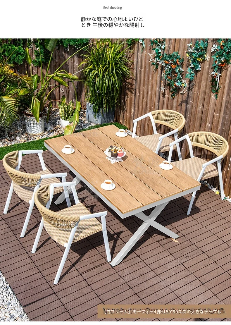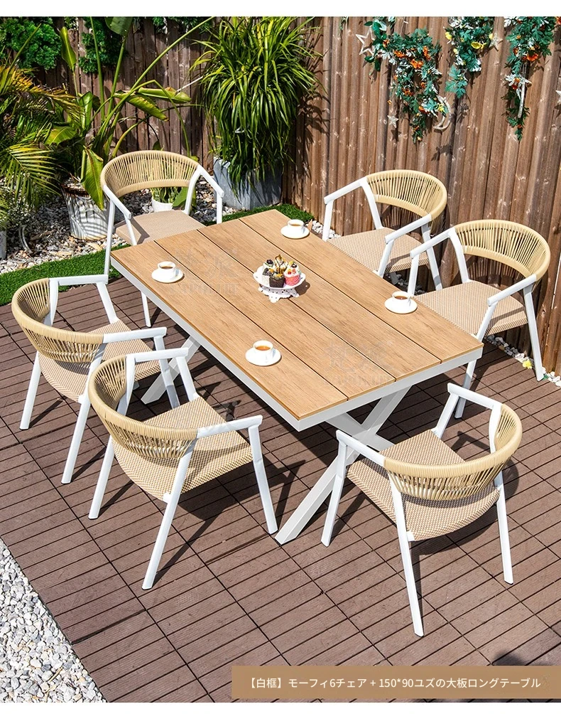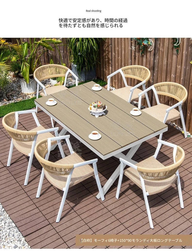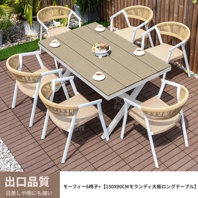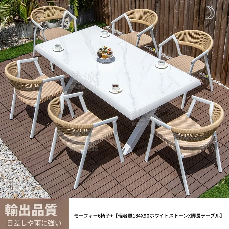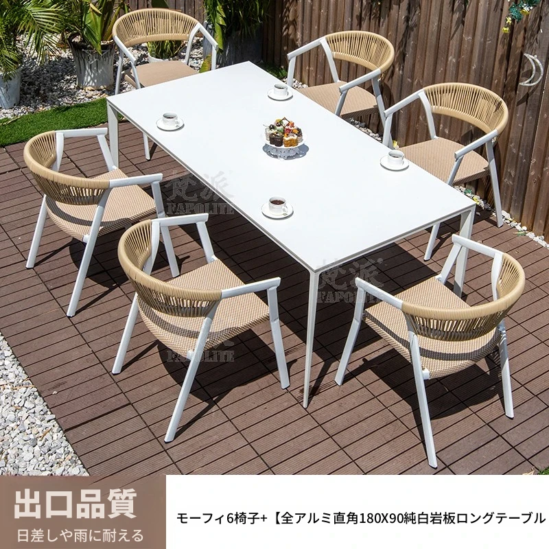 モーフィ6椅+【全アルミ直角180X90純白ストーンロングテーブル】