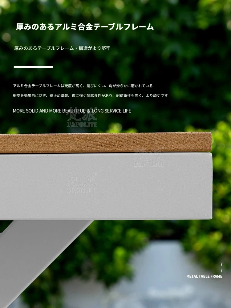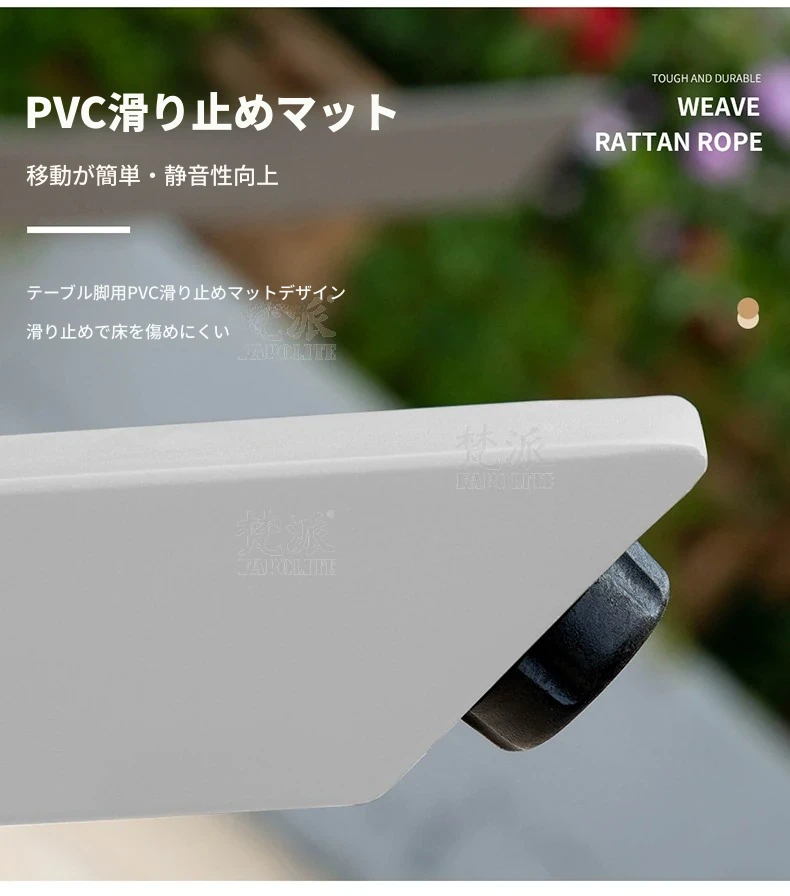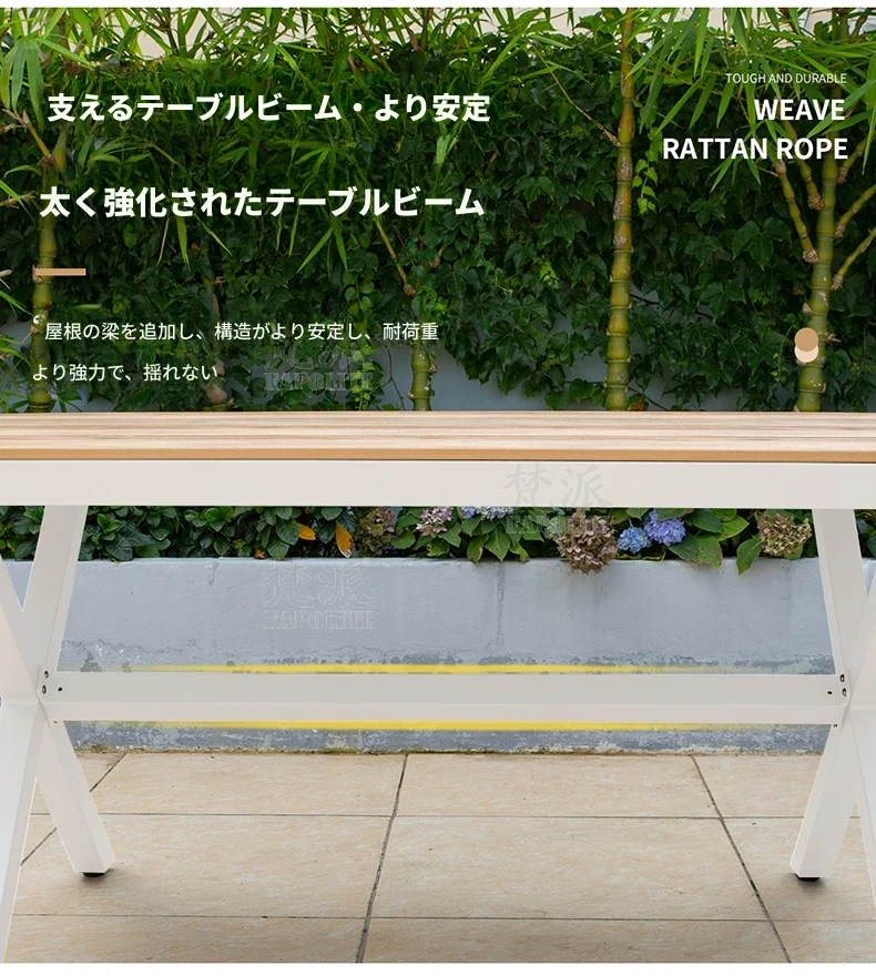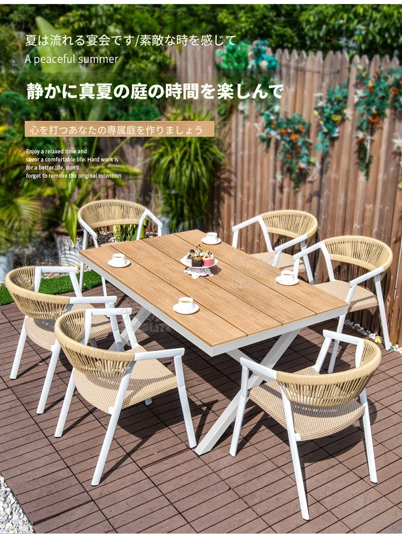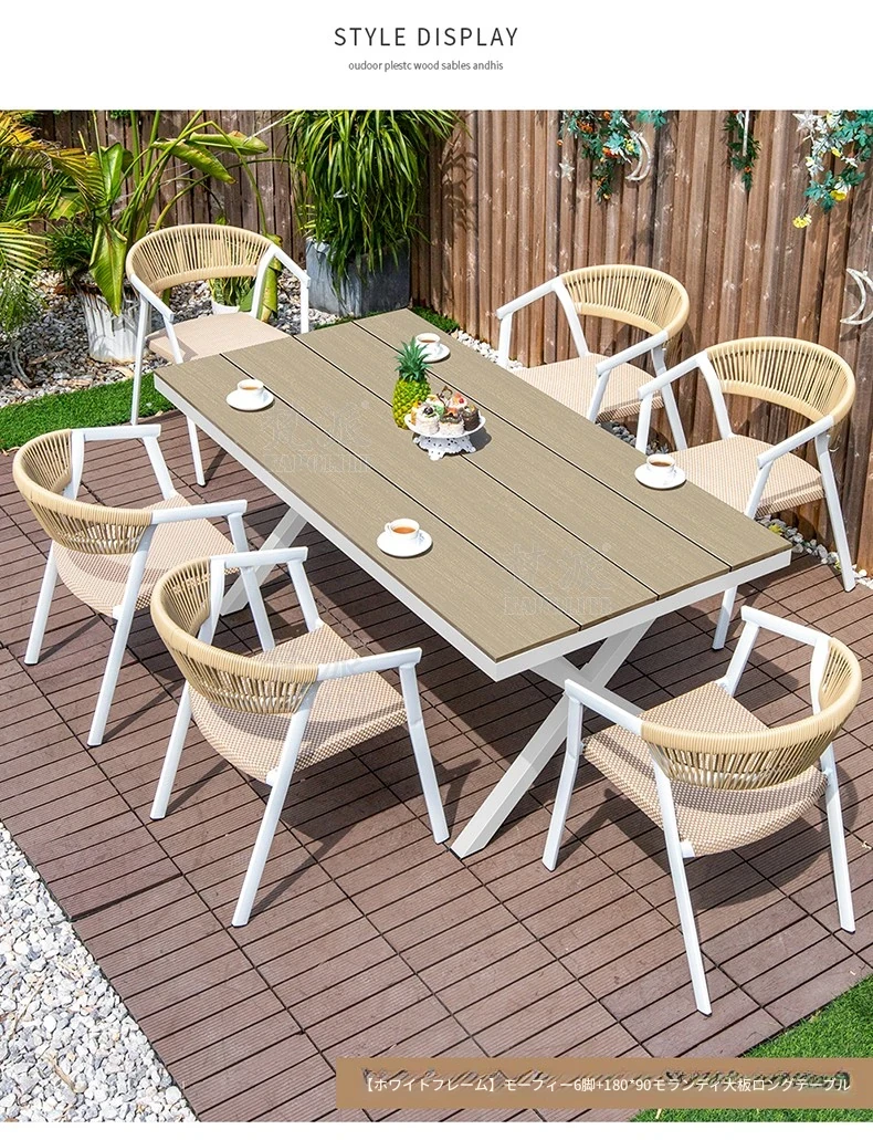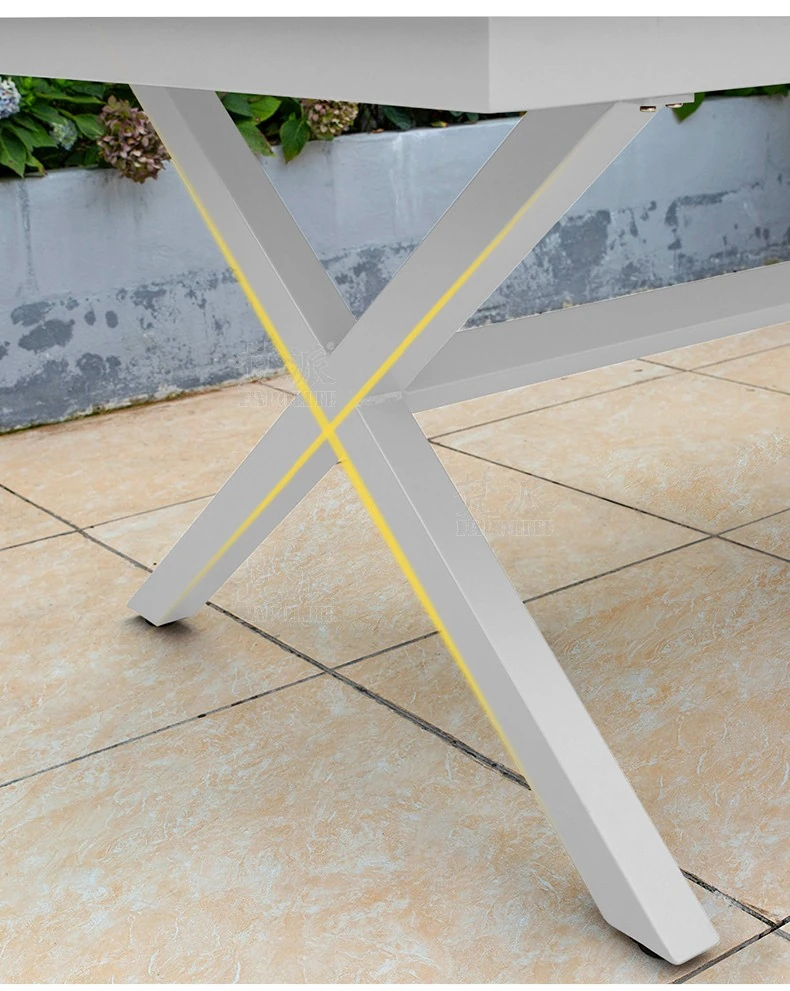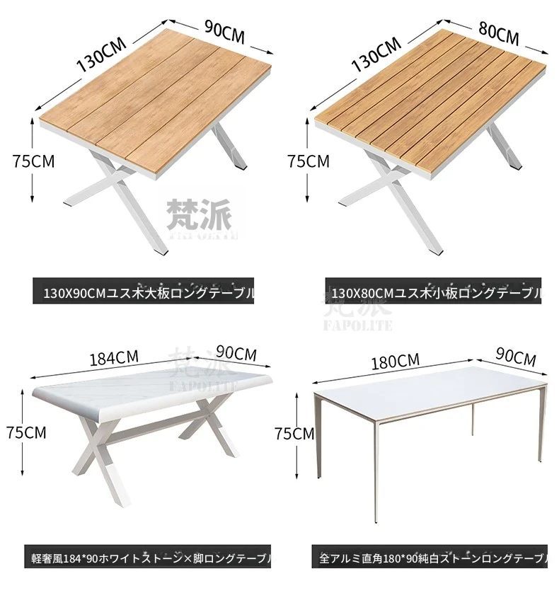 モーフィ6椅+【全アルミ直角180X90純白ストーンロングテーブル】