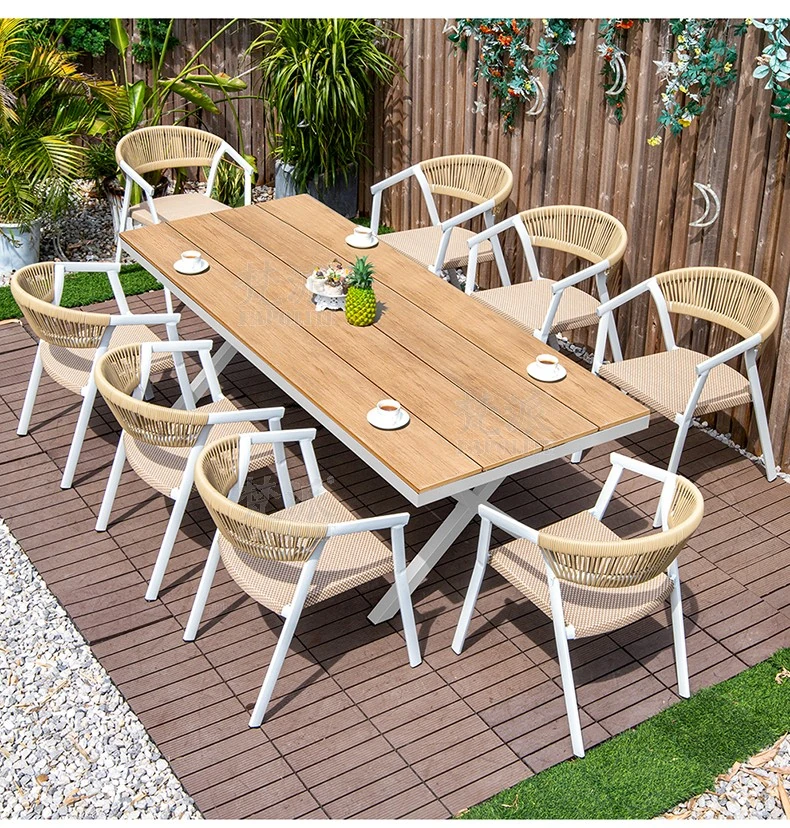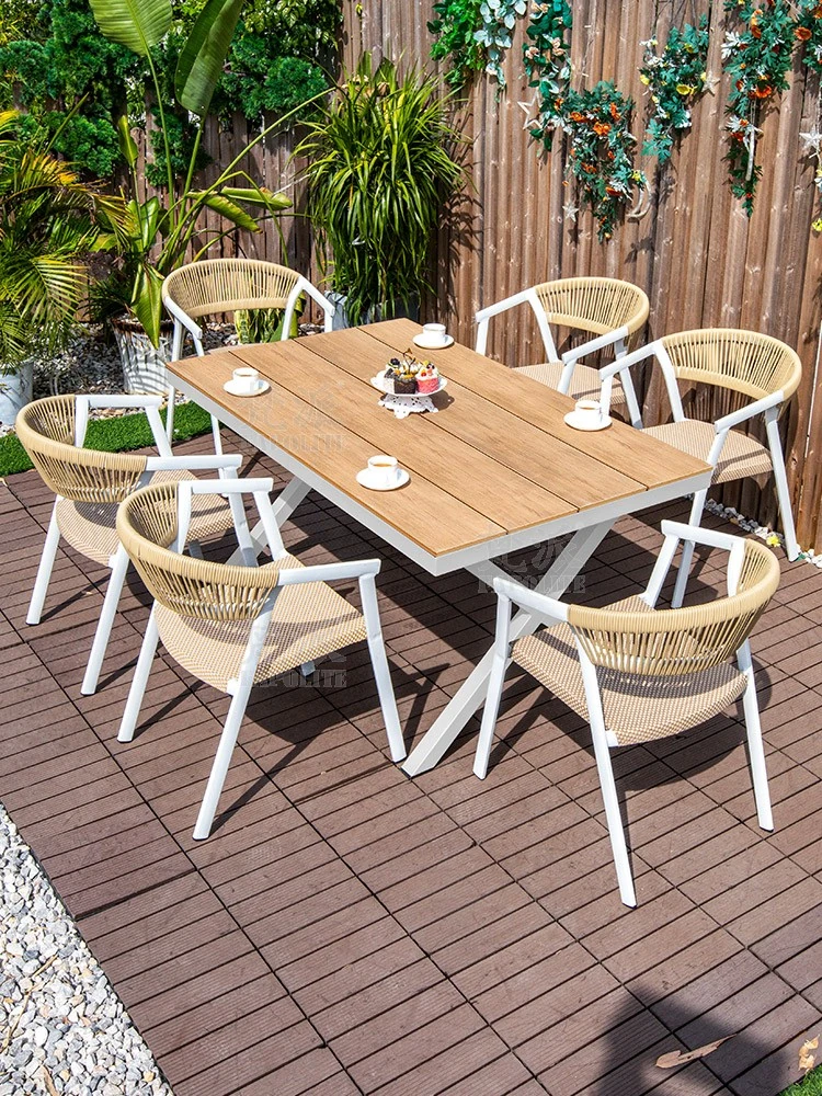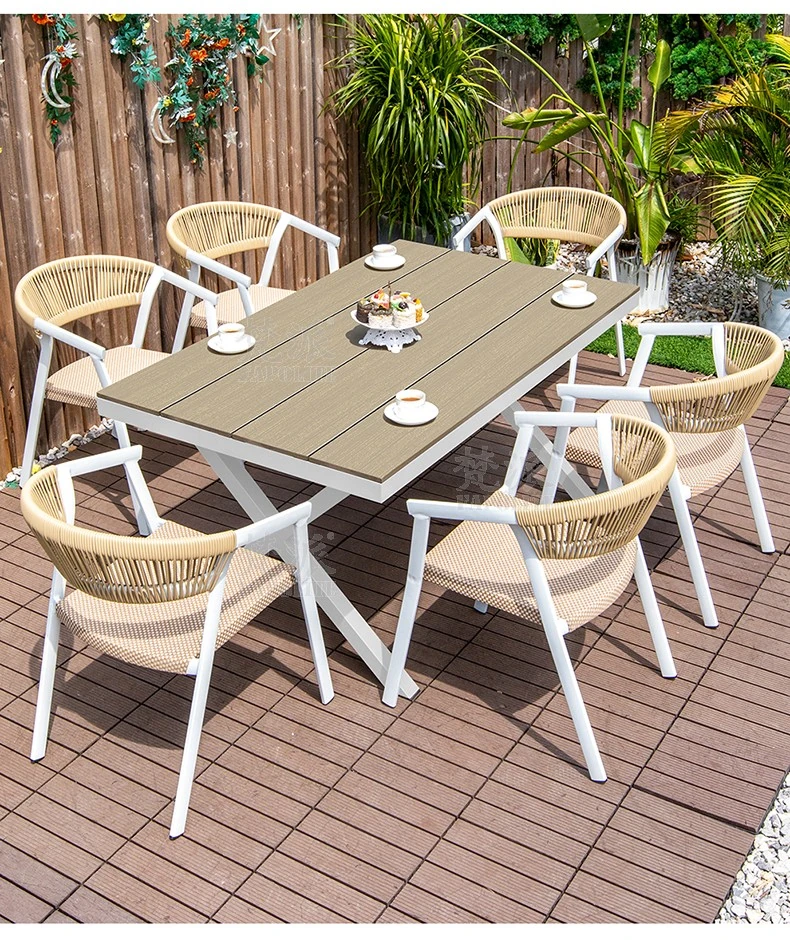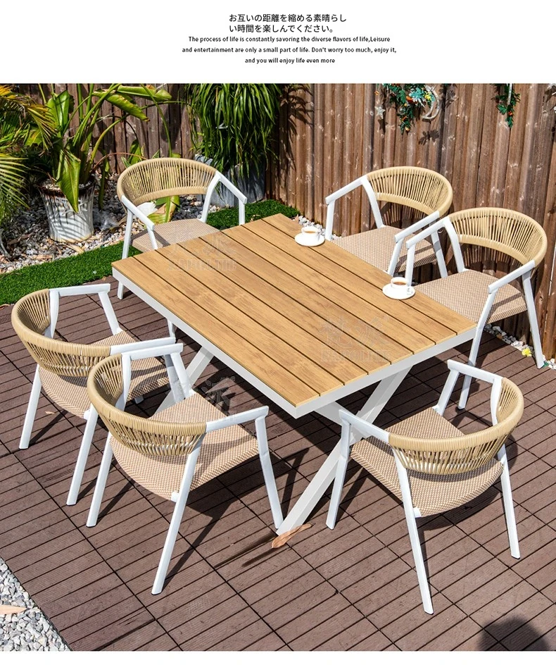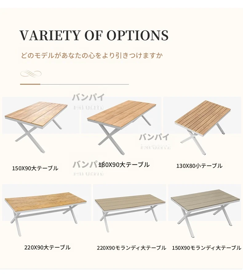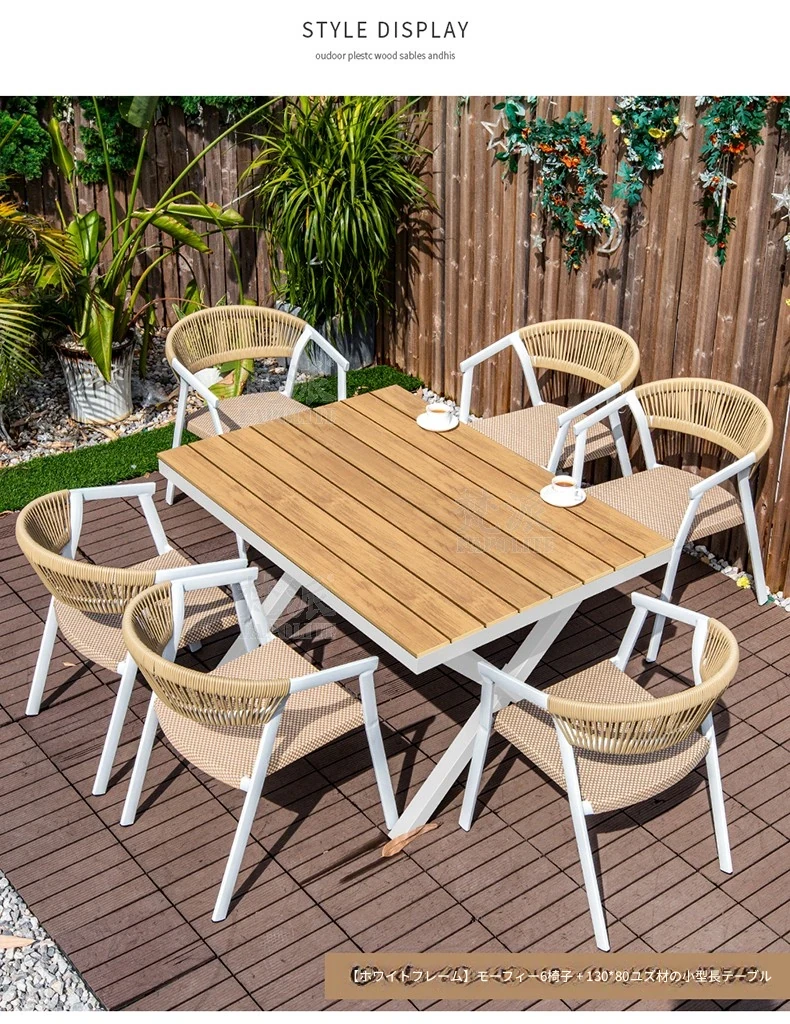 モーフィ6椅+【全アルミ直角180X90純白ストーンロングテーブル】