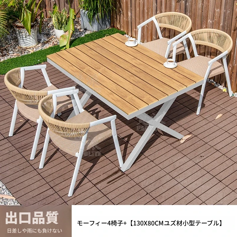 モーフィ4椅+【130X80cMユズの木小板ロングテーブル】