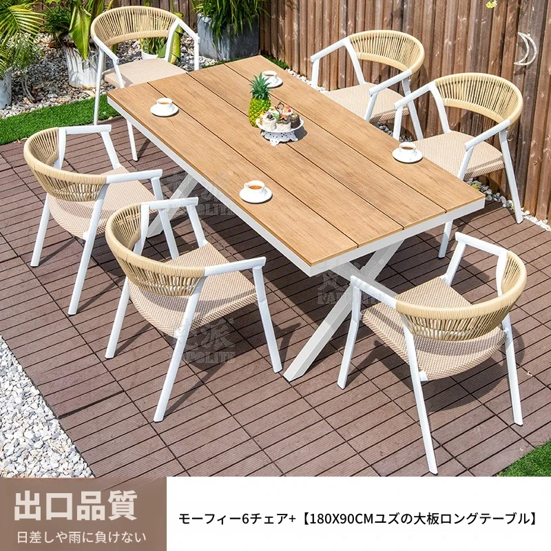 モーフィ6椅+【180X90cMユズの木大板ロングテーブル】