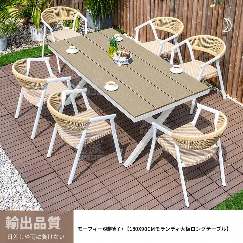 モーフィ6椅+【180X90cMモランディ大板ロングテーブル】