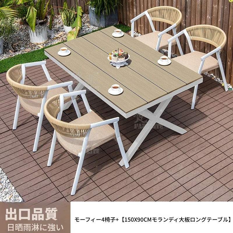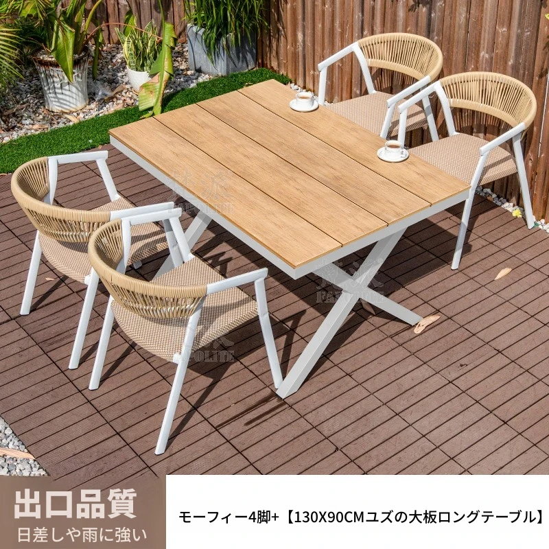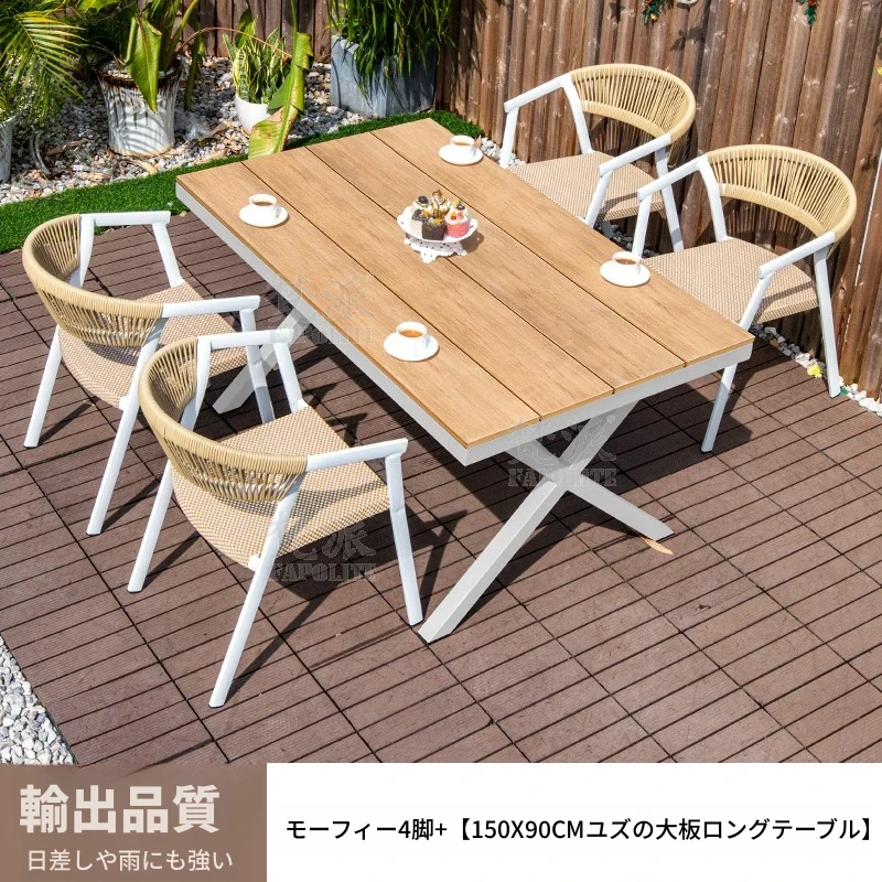 モーフィ4椅+【150X90cMユズの木大板ロングテーブル】