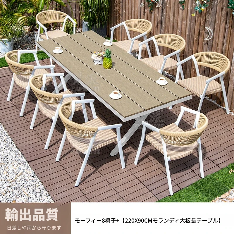 モーフィ8椅+【220X90cMモランディ大板ロングテーブル】