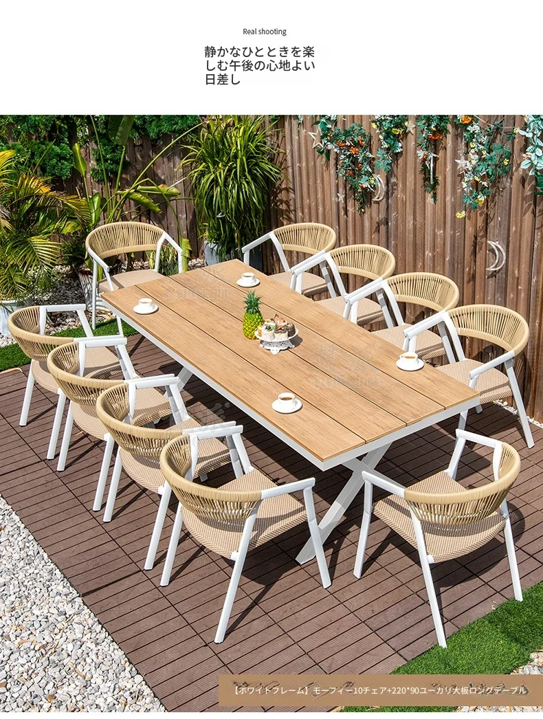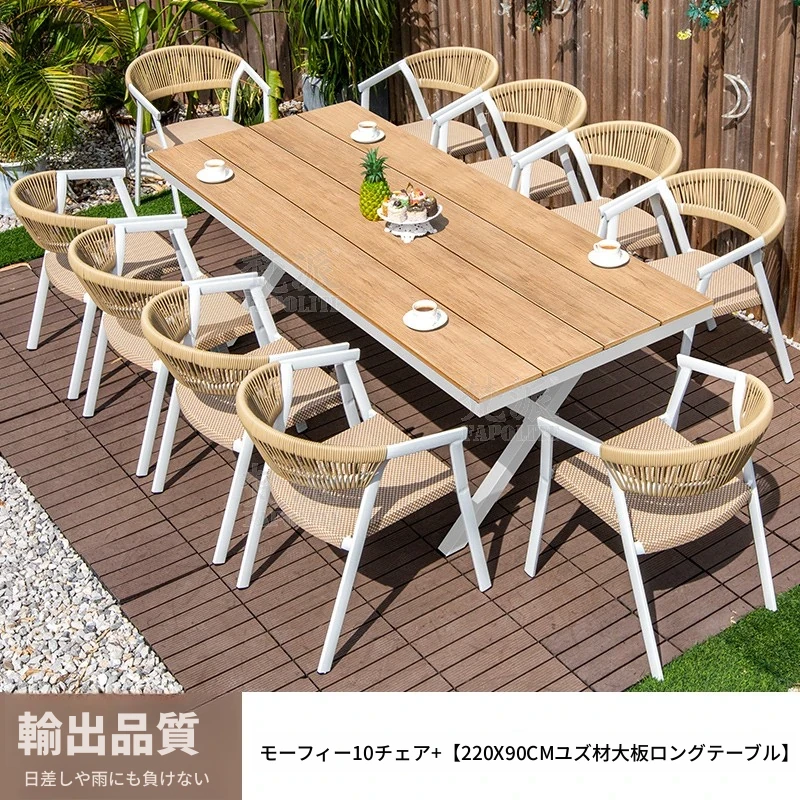 モーフィ10椅+【220X90cMユズの木大板ロングテーブル】
