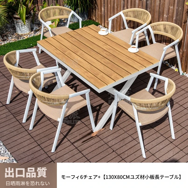モーフィ6椅+【130X80cMユズの木小板ロングテーブル】