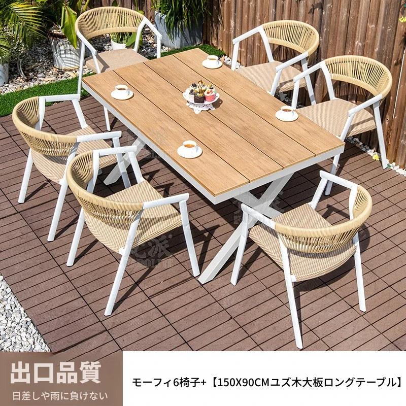 モーフィ6椅+【150X90cMユズの木大板ロングテーブル】