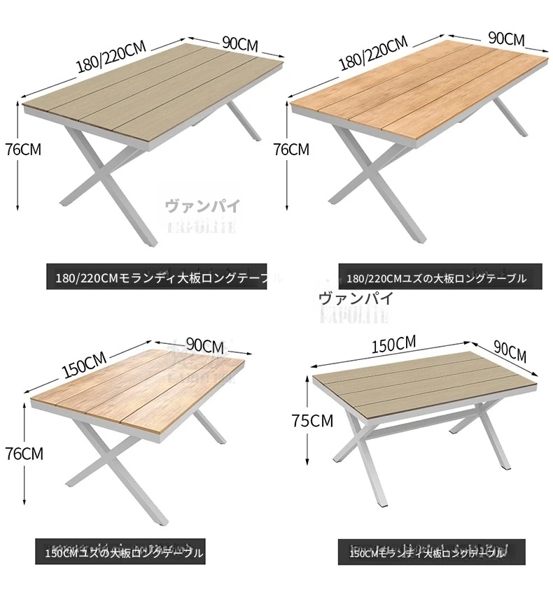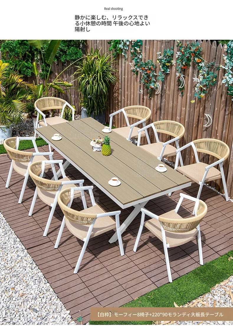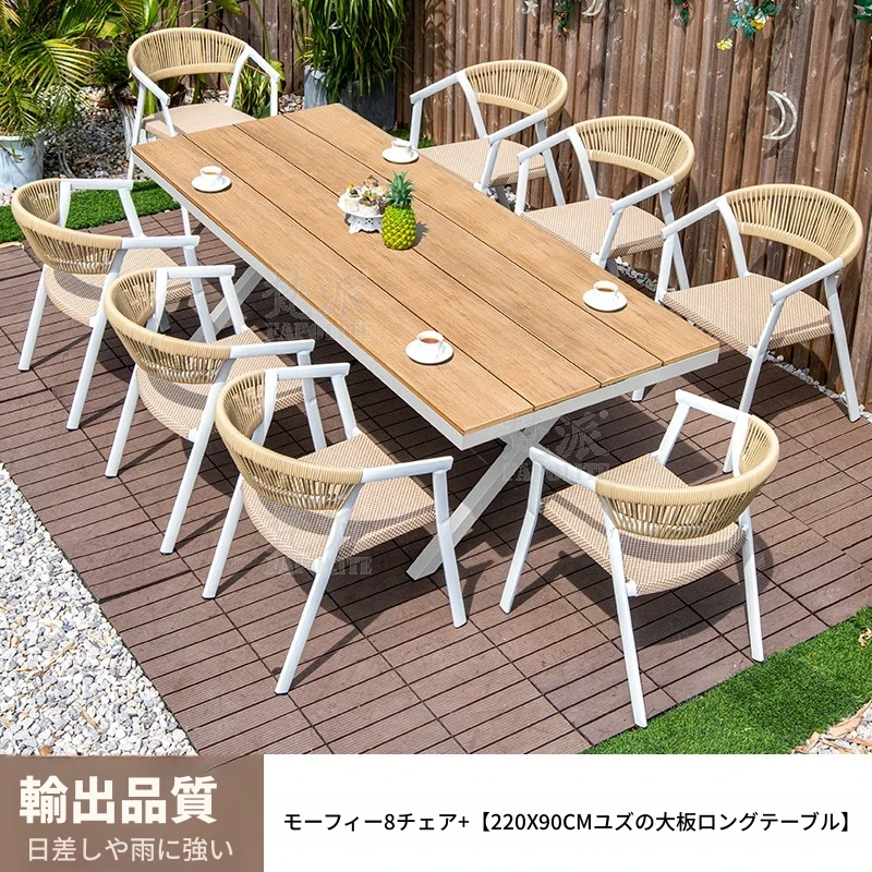 モーフィ8椅+【220X90cMユズの木大板ロングテーブル】