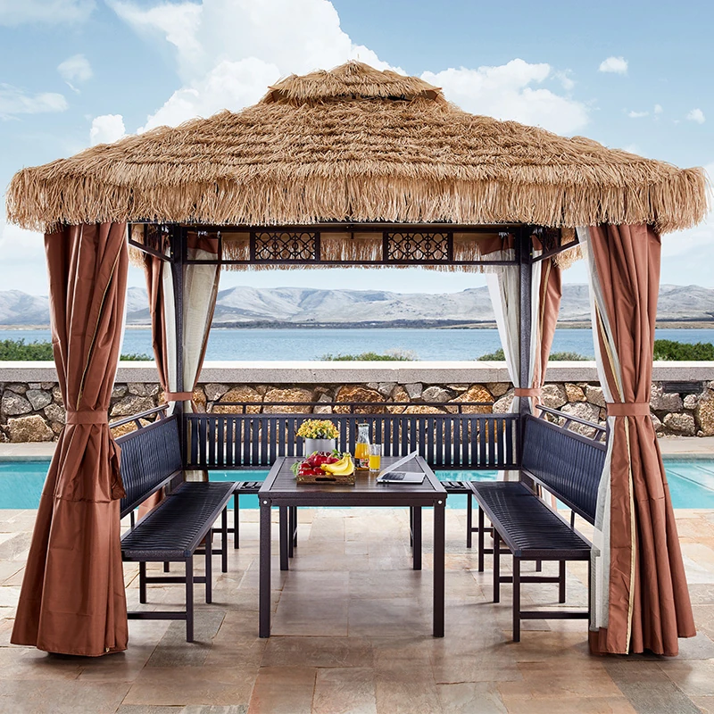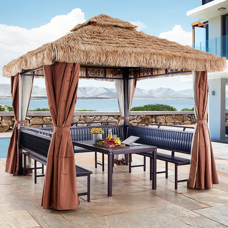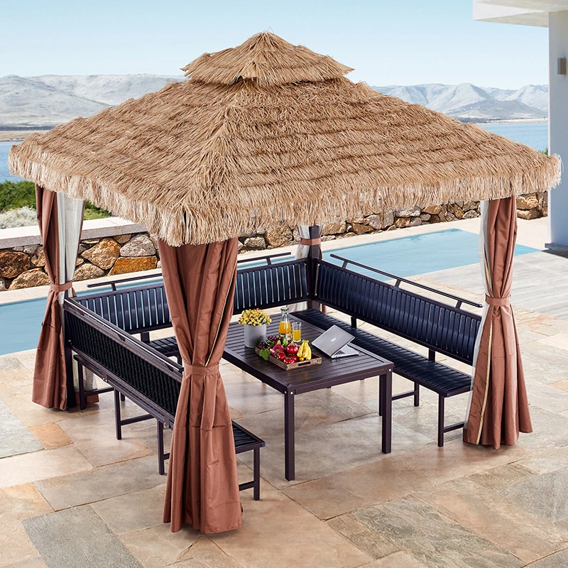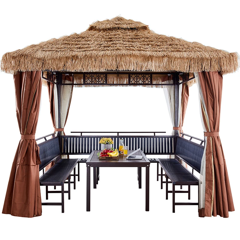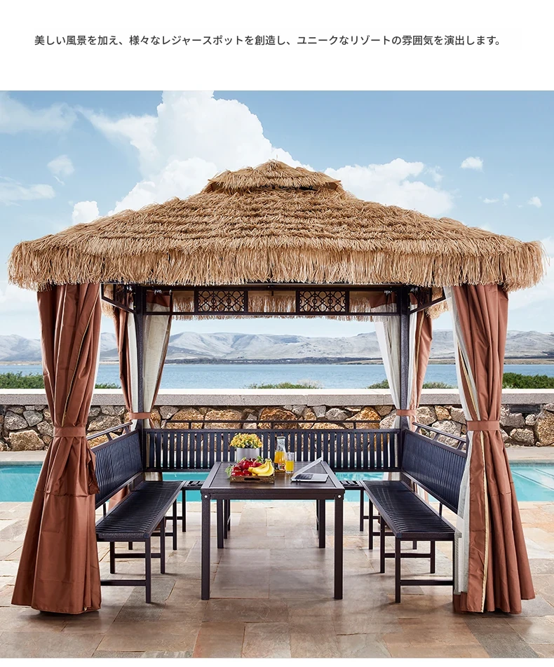アウトドアパビリオン 防腐木製 四隅の日よけ 中華風ガーデンシェード 簡易農家風 茅葺きテントで、あなたの庭をオシャレに演出!快適な日差しを遮り、リラックス空間を提供します。