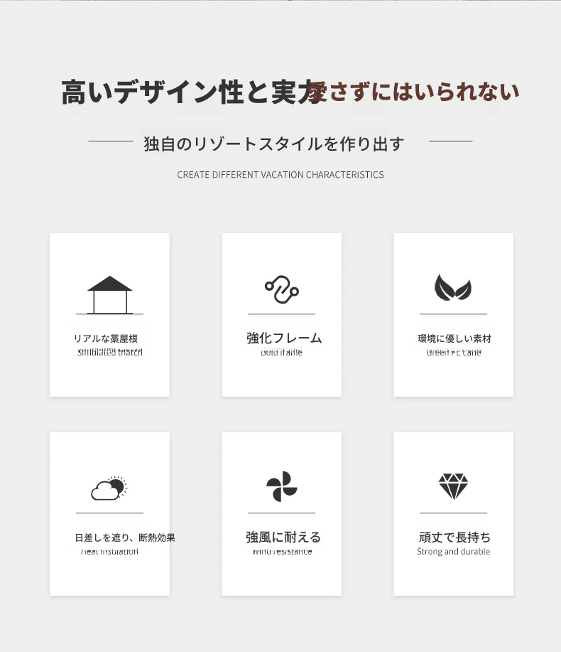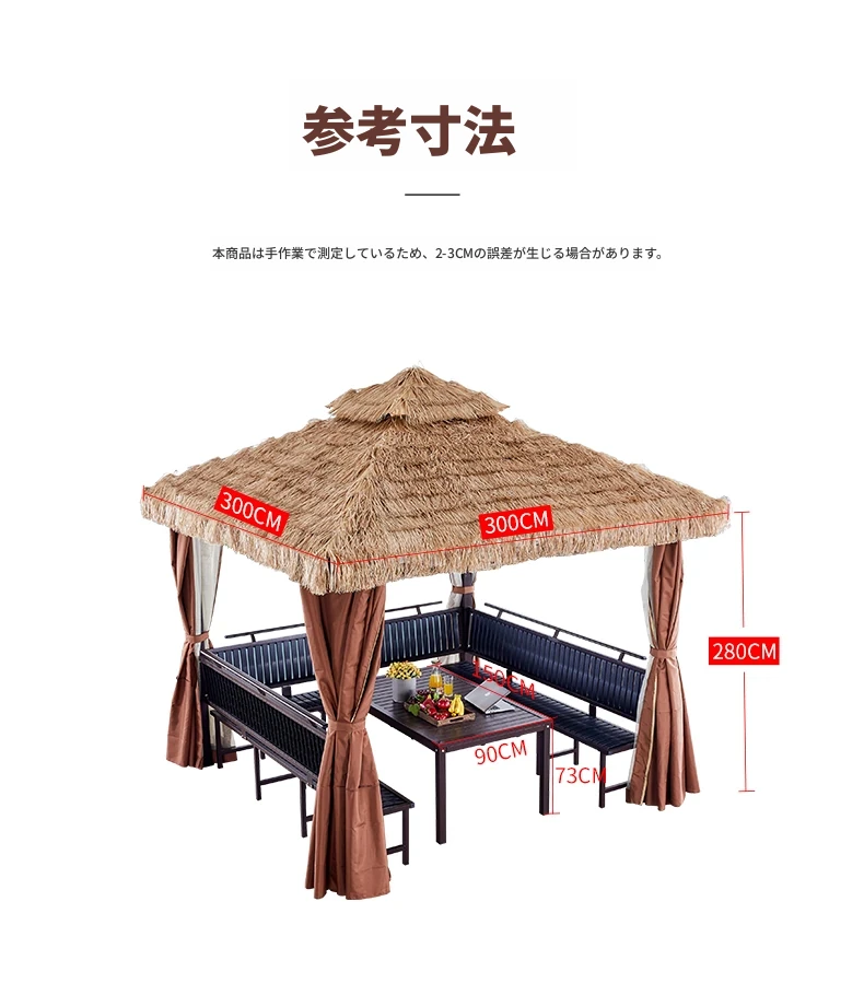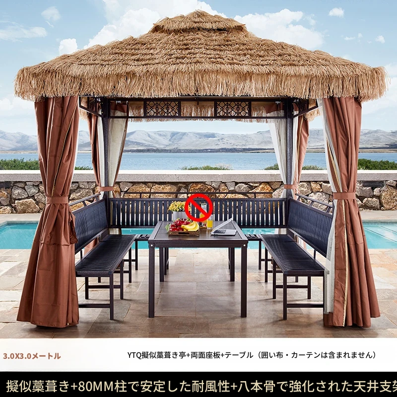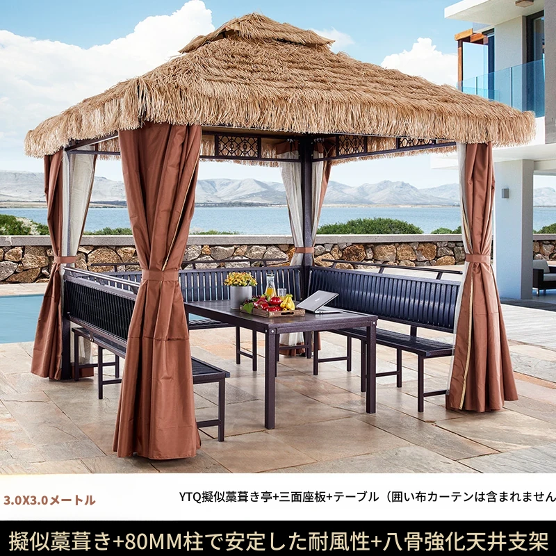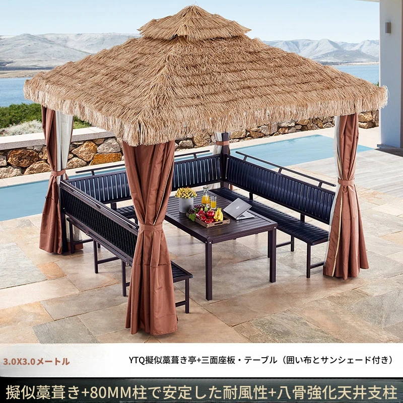 YTQわらぶきテント3*3メートル+二面テーブル+テーブル(囲い布と網戸なし) YTQわらぶきテント3*3メートル+二面テーブル+テーブル(囲い布と網戸なし)