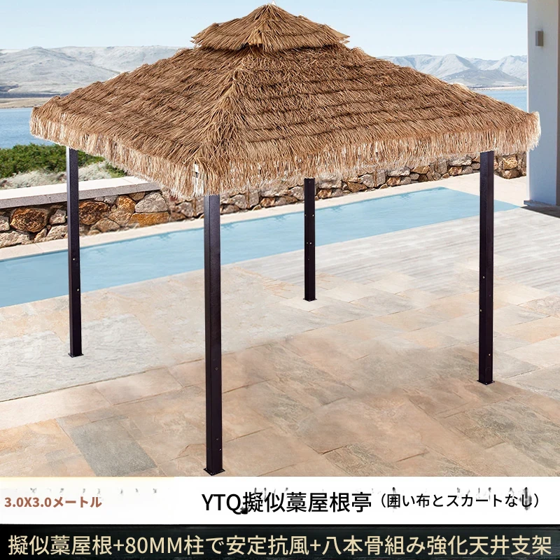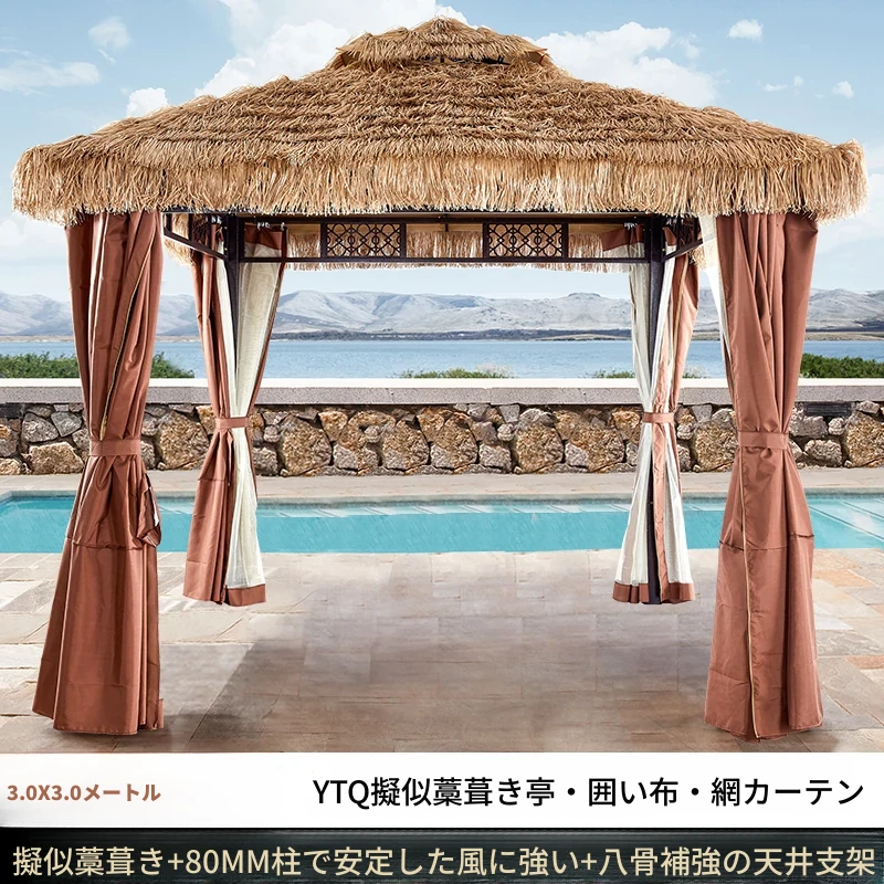 YTQわらぶきテント3*3メートル+囲い布+網戸 YTQわらぶきテント3*3メートル+囲い布+網戸