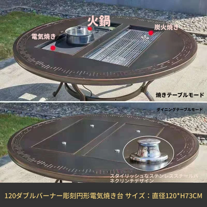 120ダブル炉彫刻円形電気焼き台(電気焼き+炭火焼き/鍋皿3選2) 120ダブル炉彫刻円形電気焼き台(電気焼き+炭火焼き/鍋皿3選2)