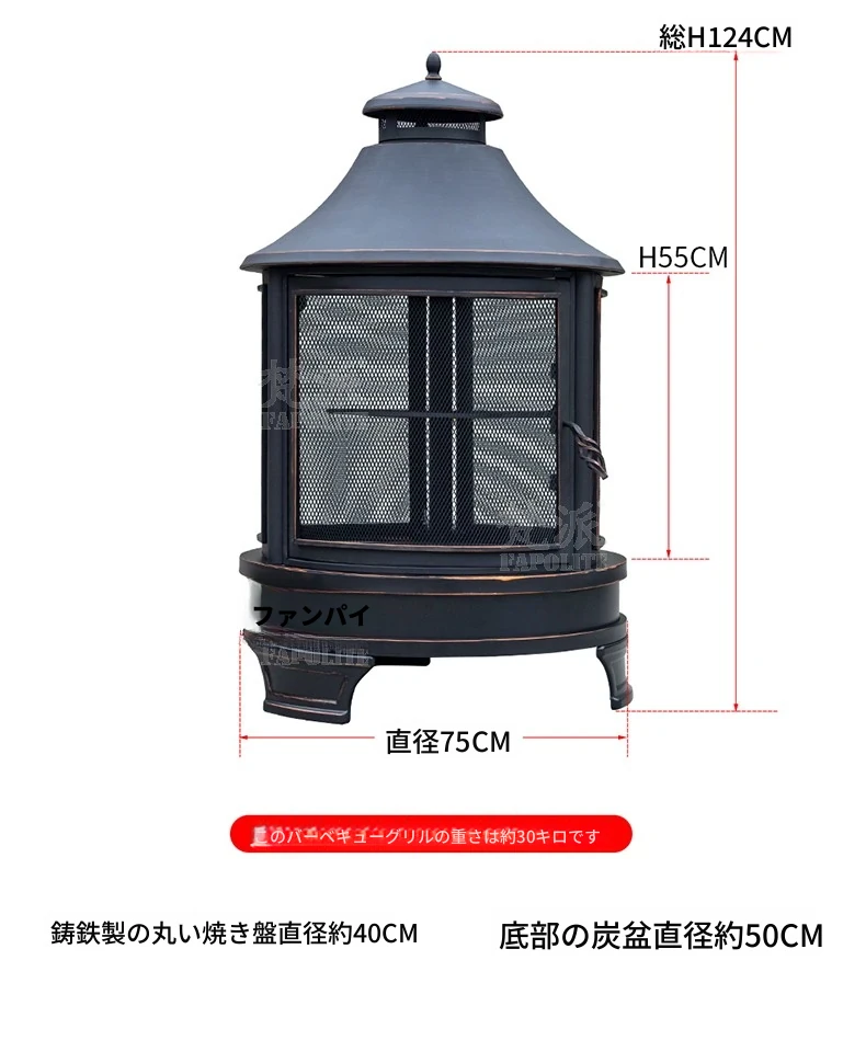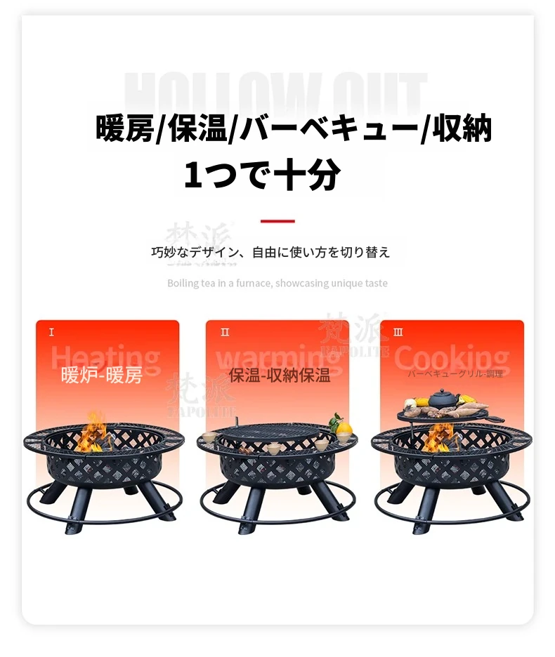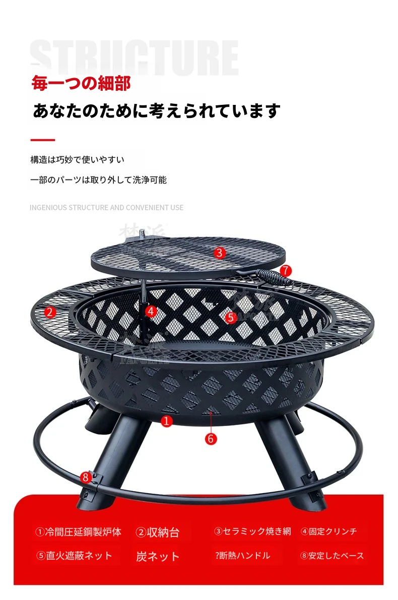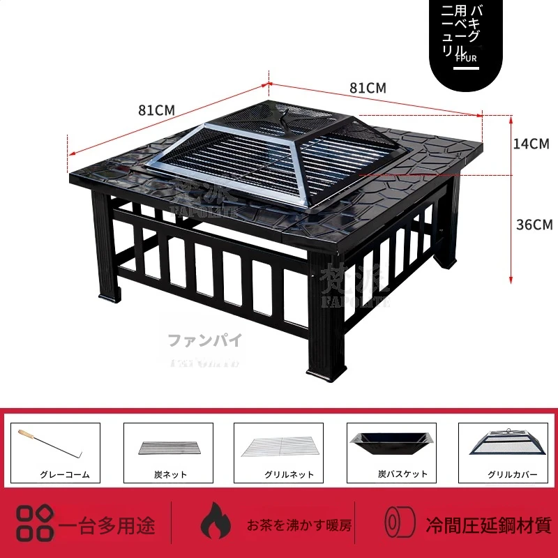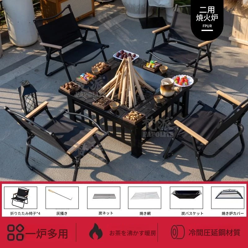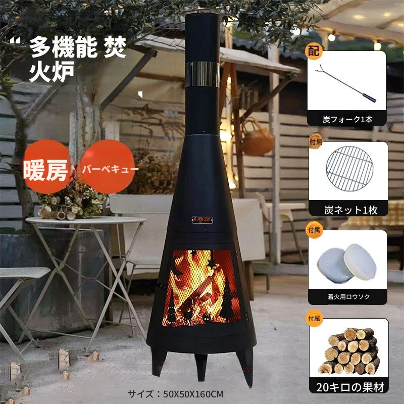 焚火炉【セット2】20斤の果材(着火ワックス、炭盆、炭網、灰かきプレゼント)