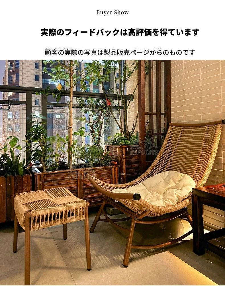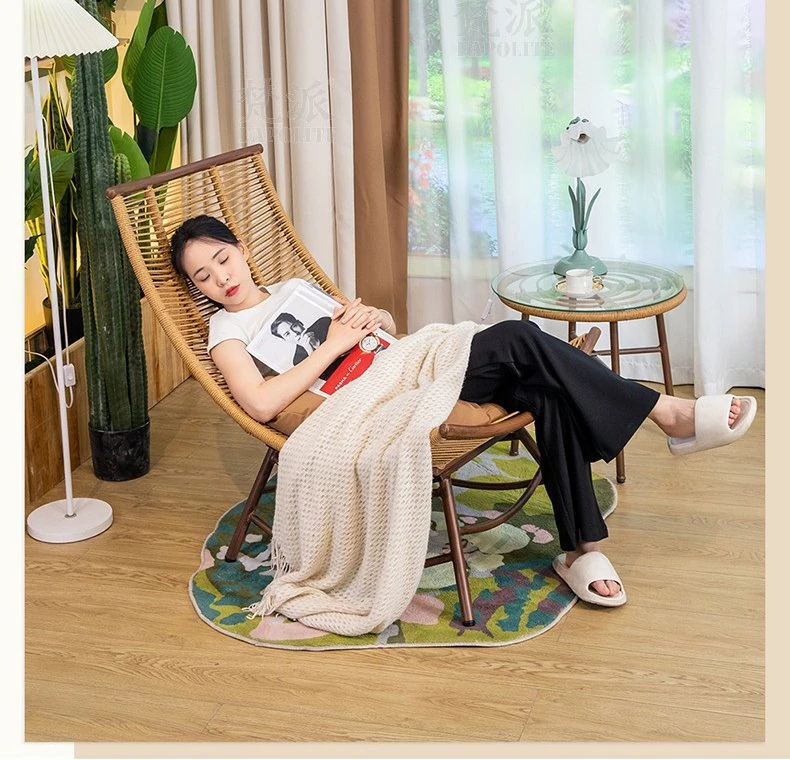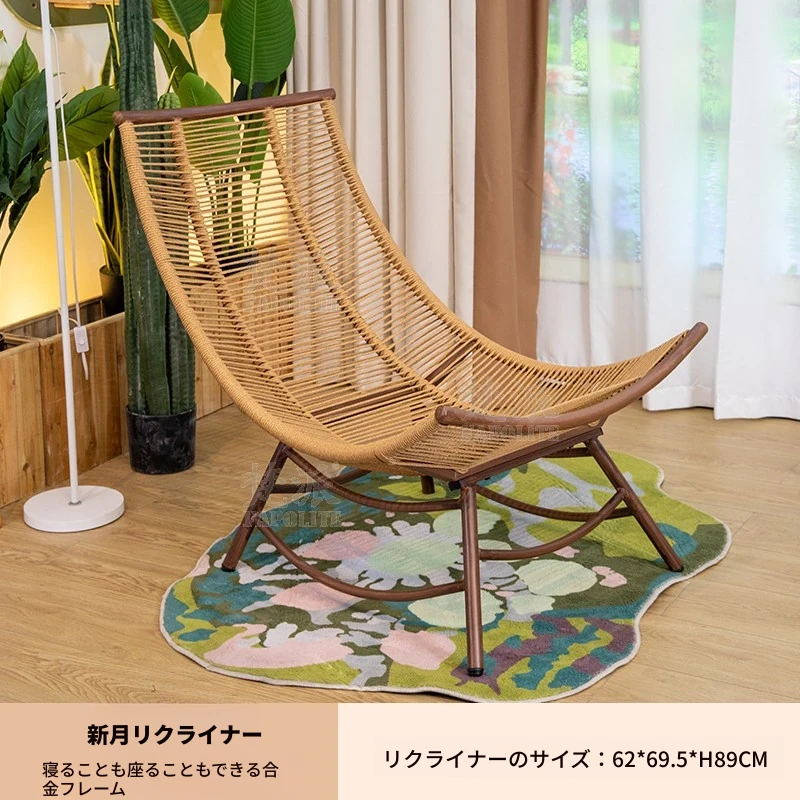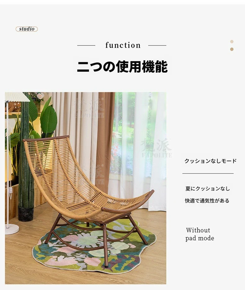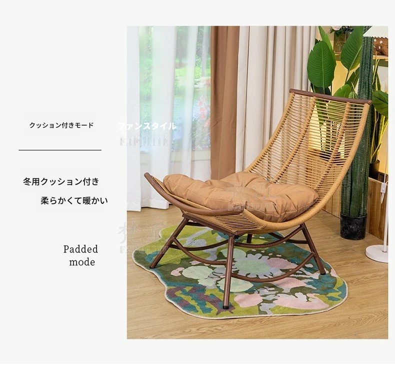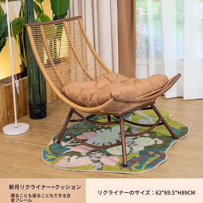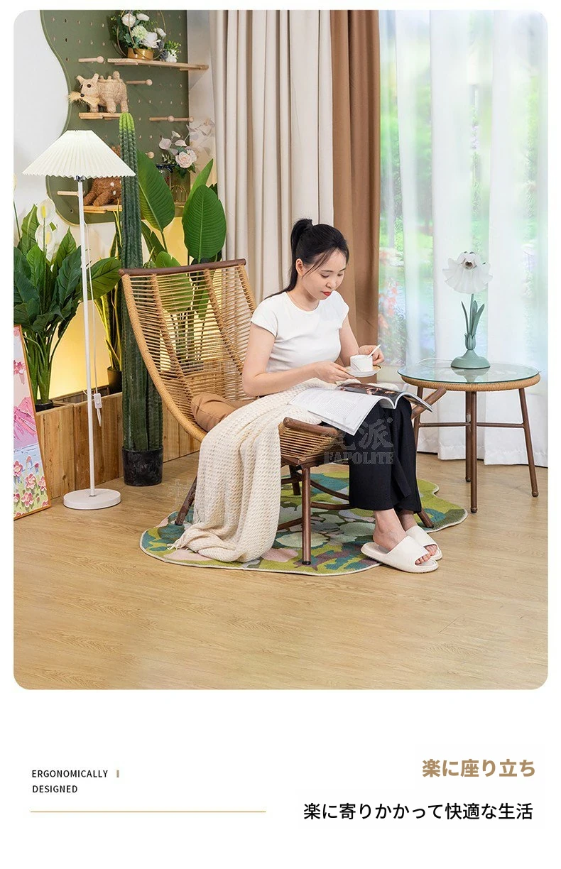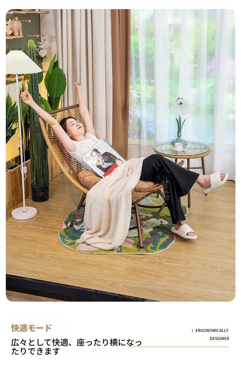 北欧スタイルのリラックスチェア|おしゃれな籐製の一人掛けソファ|バルコニーやリビングにぴったり|快適な背もたれで、民宿や自宅に最適なくつろぎの空間を演出します!