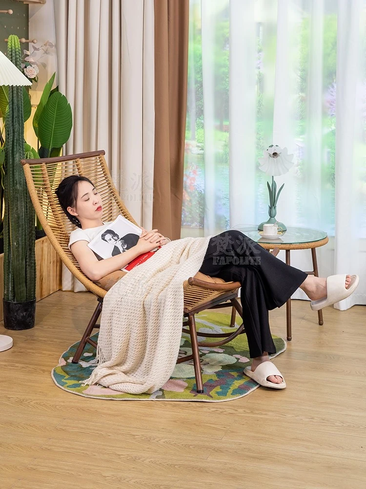 手作りの本藤編みリクライニングチェア – おしゃれな民宿やリビングに最適!居心地抜群のくつろぎ空間を演出する、軽やかでエコな藤椅子。魅力的なデザインで、あなたの生活空間を彩ります。