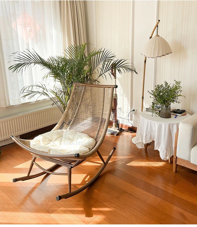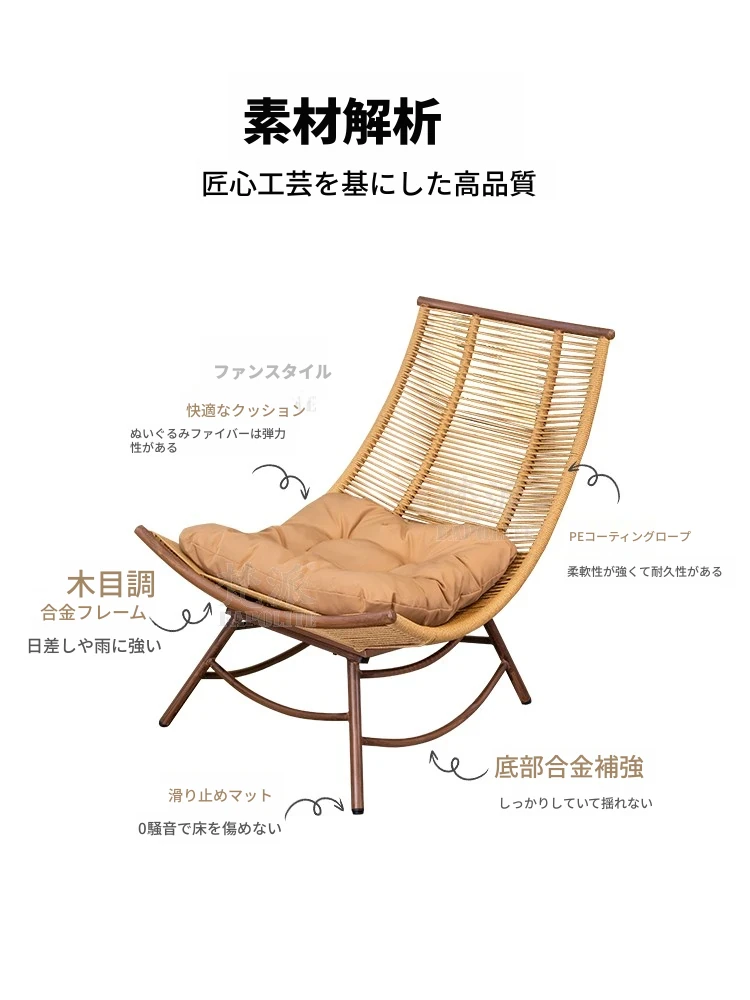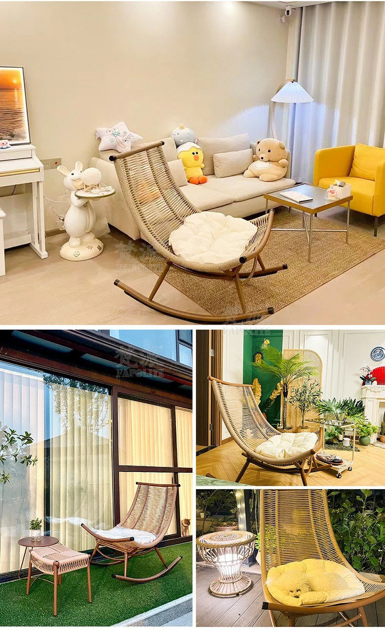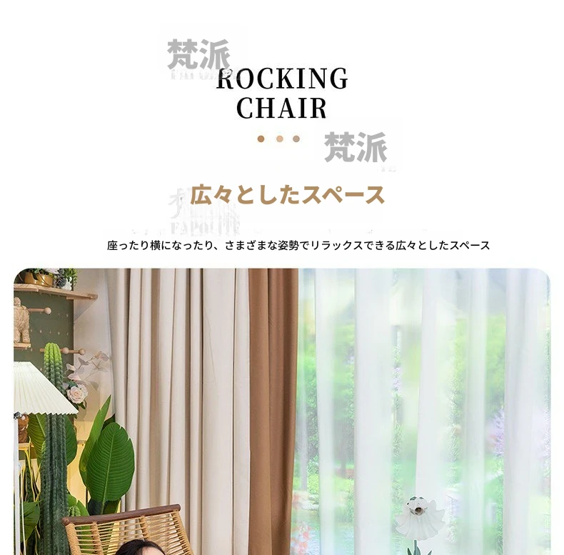 ファンスタイルの揺り椅子・リラックスソファ|大人用・バルコニー・家庭用・カジュアルチェア|藤製・アウトドア・庭用・心地よい揺れで至福のひとときをお楽しみください!