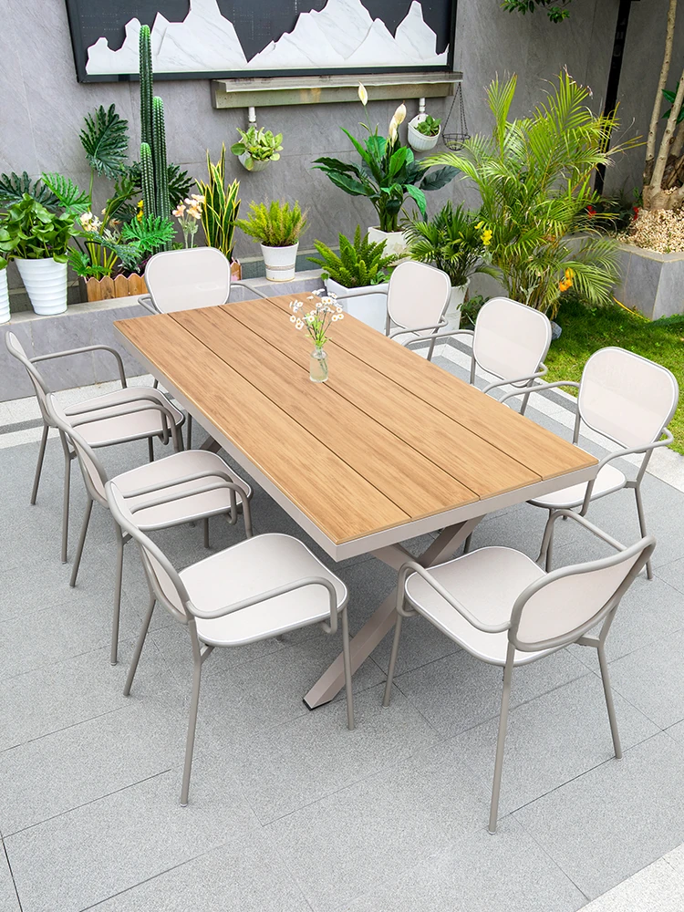 アウトドア BBQ テーブルセット - アルミ合金製、耐水性、庭やバルコニーに最適な長テーブル!高級感溢れるデザインで、バーベキューやパーティーを楽しむのに最適。別荘や庭にぴったりのスタイリッシュなアイテム!