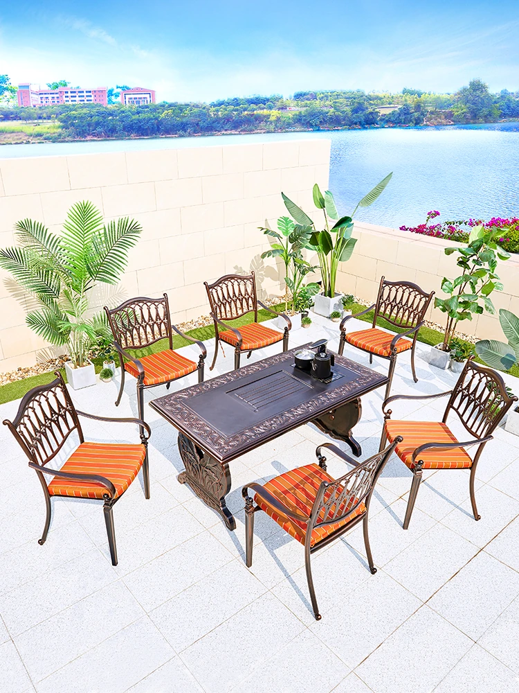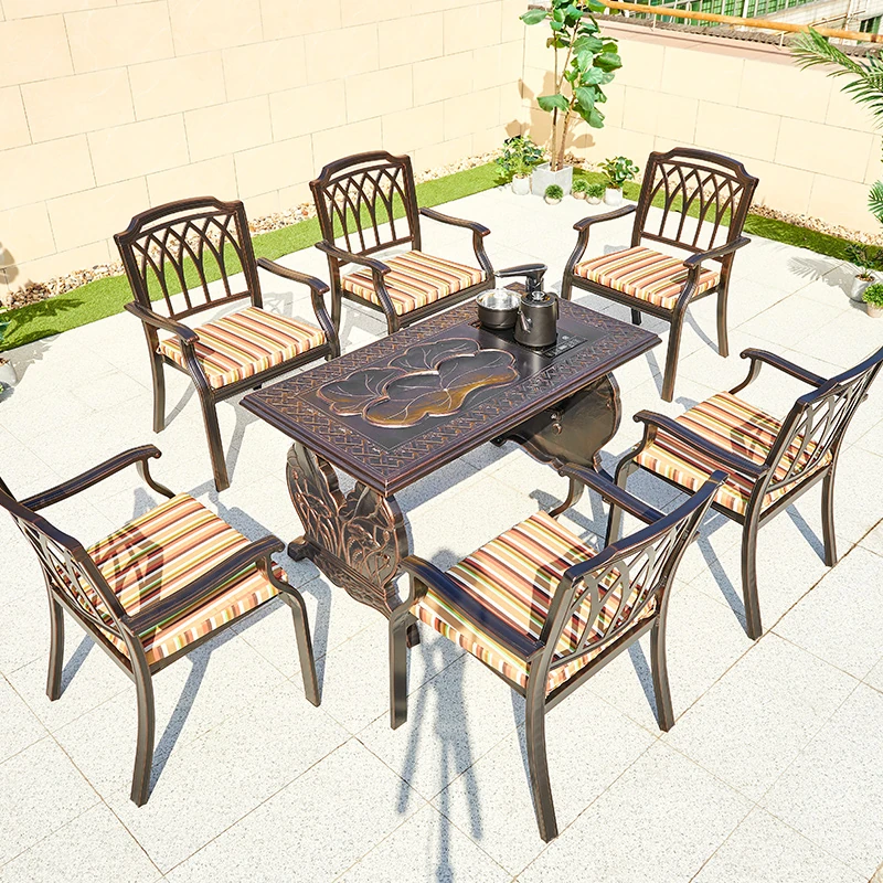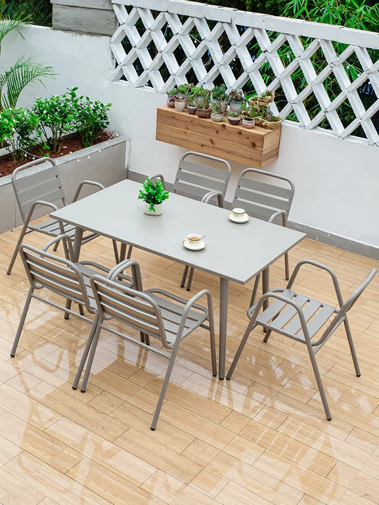 アウトドア鉄製テーブルと椅子セット|屋外用おしゃれな欧風アルミ合金ダイニングテーブル|庭や別荘にぴったりのリラックス空間を演出!