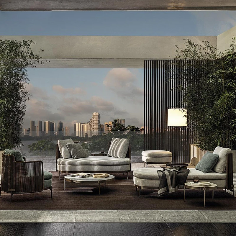 北欧風のリビングやバルコニーに最適!藤製ソファと小さなテーブルのコンビネーションで、庭や別荘でもくつろぎのひとときを。おしゃれで快適なアウトドア家具をお楽しみください!