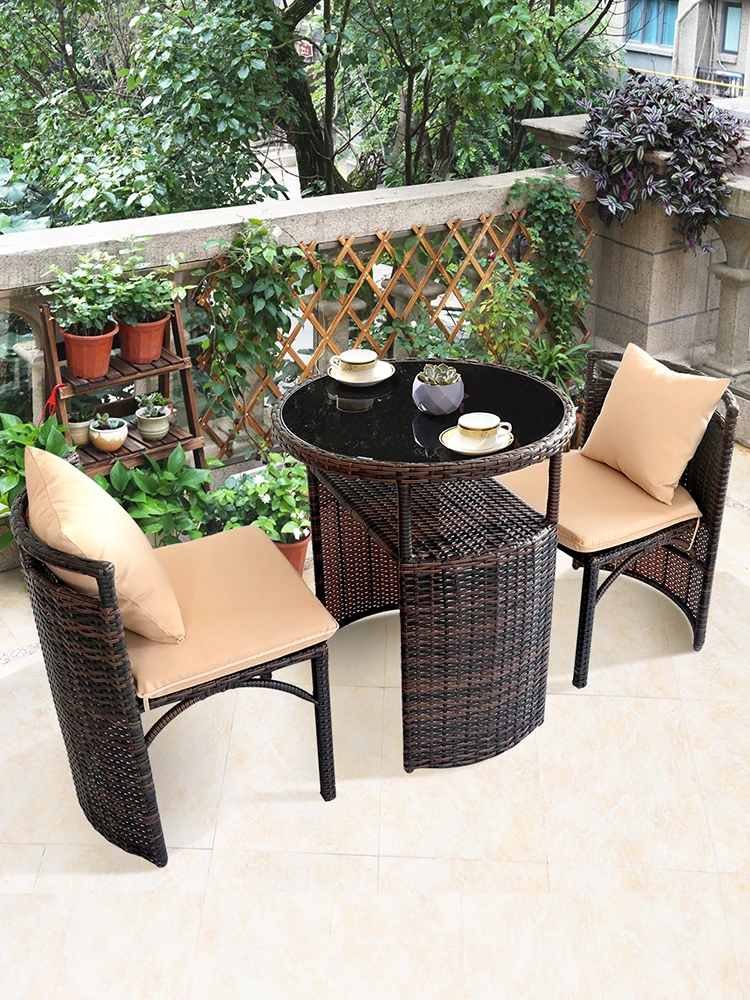 防水・防晒の鉄製ガーデンチェアセット!リラックスできるおしゃれな藤椅子とテーブルの組み合わせで、テラスや庭に最適。快適なアウトドアライフをお楽しみください!