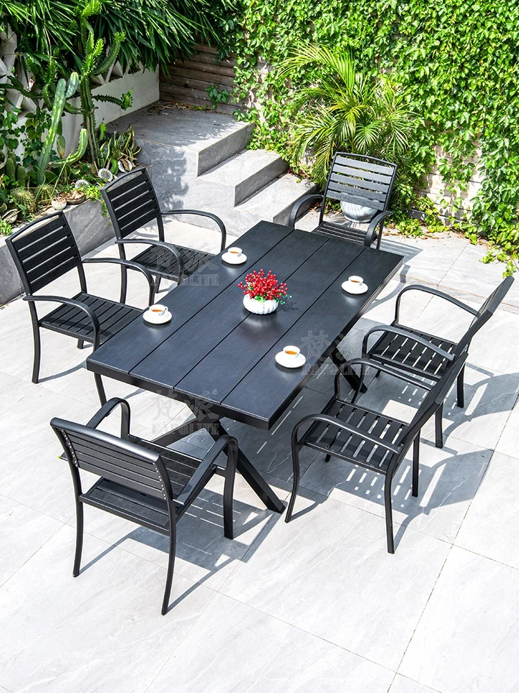 アウトドア用プラスチック木材製テーブル&チェアセット - バルコニーや庭に最適なリラックスチェア、耐久性のあるアルミ合金製ダイニングテーブル、腐食に強いプラスチック木材使用で、快適な屋外空間を演出します!