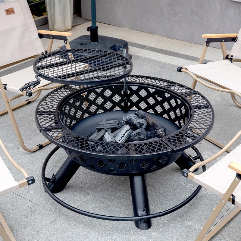 ヴァンパイ アウトドア キャンプ用 焚き火台 暖房 バーベキュー用薪 テーブル付き焚き火盆 折りたたみ式 ティー用鍋 冬の庭でのバーベキューに最適!ポータブルで、どこでも暖かさと楽しさを提供します。