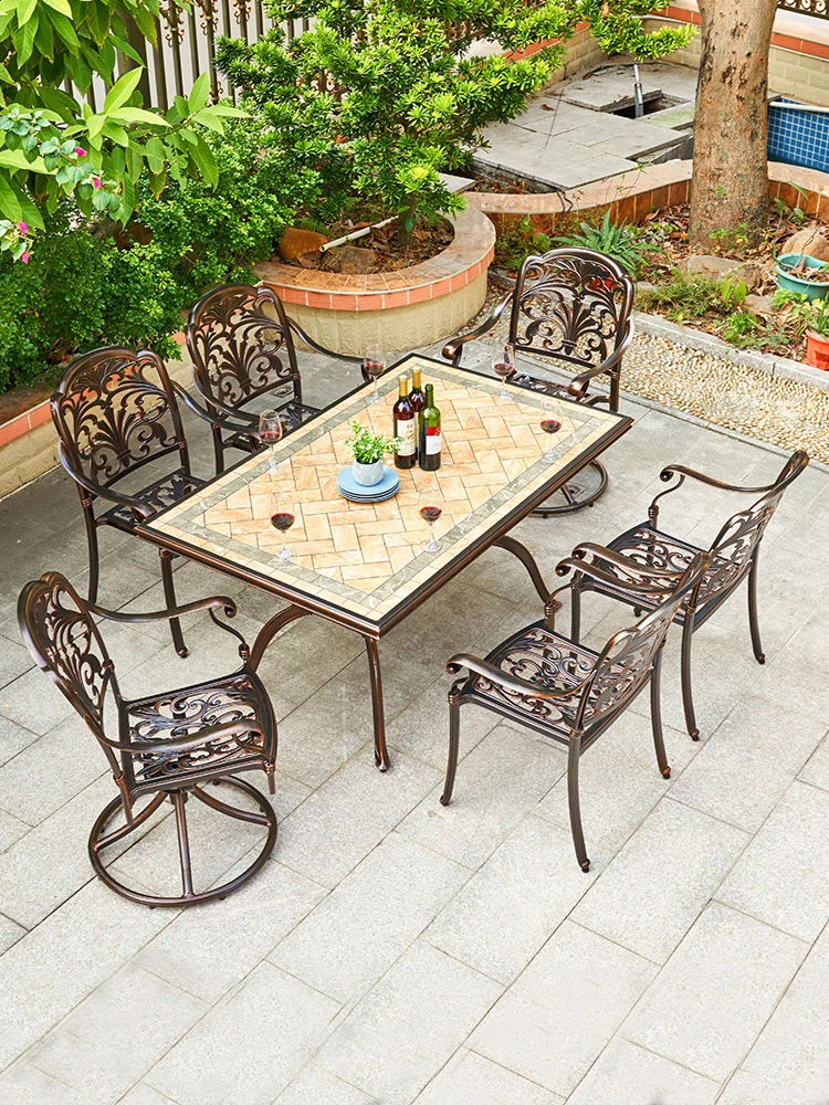 Outdoor Cast Aluminum Long Table with Hollow Carving - Waterproof Patio Dining Set for Garden, Villa, and Airbnb - Perfect for BBQs and Relaxing in Style